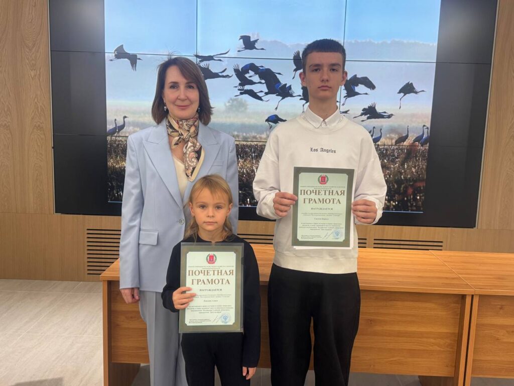 29 сентября в Волгоградском государственном аграрном университете прошло торжественное награждение победителей творческого конкурса видеороликов «Журавушка» в рамках областного мероприятия «День Журавля», организованного комитетом природных ресурсов, лесного хозяйства и экологии Волгоградской области. В номинации «Журавли в народных традициях, обычаях, верованиях» в возрастной категории 6-9 лет победила ученица 1 «А» класса Алиса Левкина, а в старшей группе ученик 9 «А» класса Кирилл Салмов награждён почётной грамотой за достижения в сфере изучения и охраны природных ресурсов.